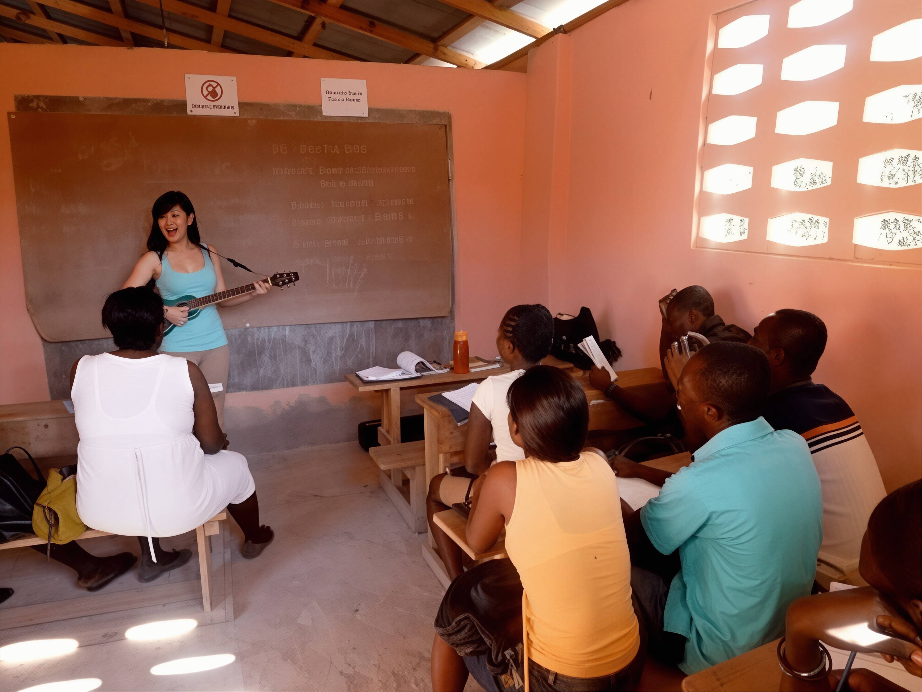 刘安婷:是当义工。第一次当老师是在非洲加纳。在那边当了两个月的小学三年级老师。他们的就学率很不稳定,孩子从9岁到14岁。除了年纪差很多,桌子也不够用,所以很多人挤在桌子上,制服都是捐来的。很热的夏天,如果他们只抢到了一件冬天外套,他也只能穿着冬天外套在夏天上学。