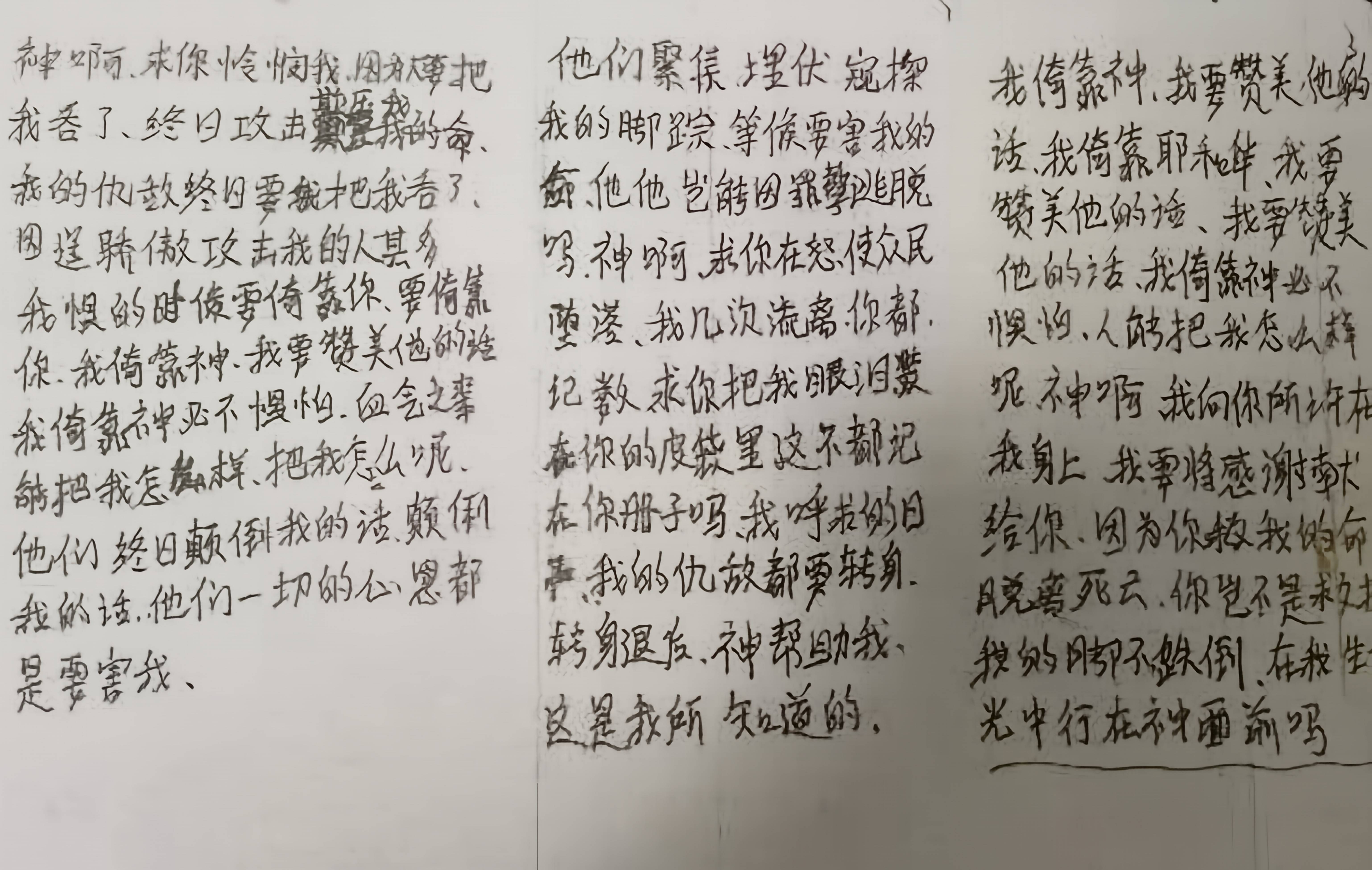 那段日子,每次一去找老姐妹祷告,回到家里人就好一点;如果不去,就觉得自己活不成了。可总去打扰别人,感觉不好意思。有一次老姐妹说:“我们都是主的仆人,你啥时候来,我啥时候给你祷告。”有时整整一个月,我每天都去老姐妹家,甚至在家里端着饭碗,吃不进去就想哭,于是赶紧放下碗,先去老姐妹家祷告完了,回来才吃得下。